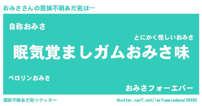 | ヒーロー風カッコイイあだ名 | 『友情の使者おみさ』『幻影騎士オミ』 |