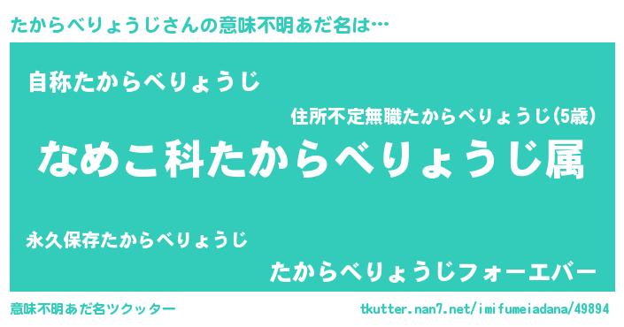 | 料理風あだ名 | 『たからべりょうじごはん』 |