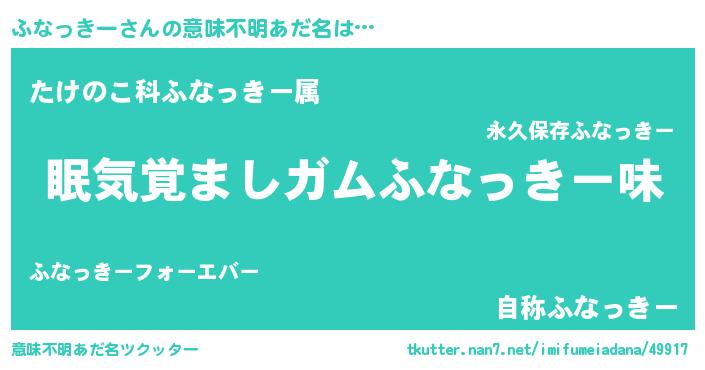 | ヒーロー風カッコイイあだ名 | 『慈愛の使者ふなっきー』『幻影騎士フナ』 |
