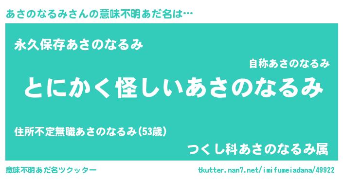 | ポケモン風あだ名 | 『ヒアサノナルミ』『メロアッサ』 |