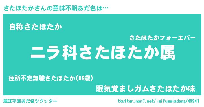 | 欧米人風あだ名 | 『さたほたか・ステッグマイヤー』 |