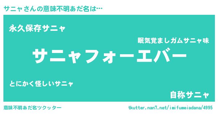 | 女子向けラノベタイトル風あだ名 | 『サニャの雑貨屋さん』 |