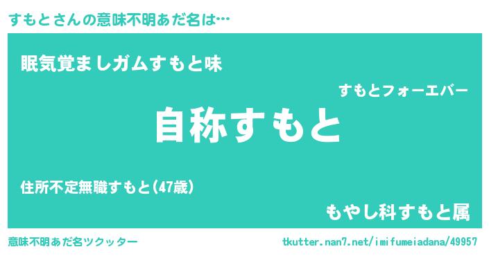 | 男性向けラノベタイトル風あだ名 | 『Re:すもとから始める異世界生活』 |