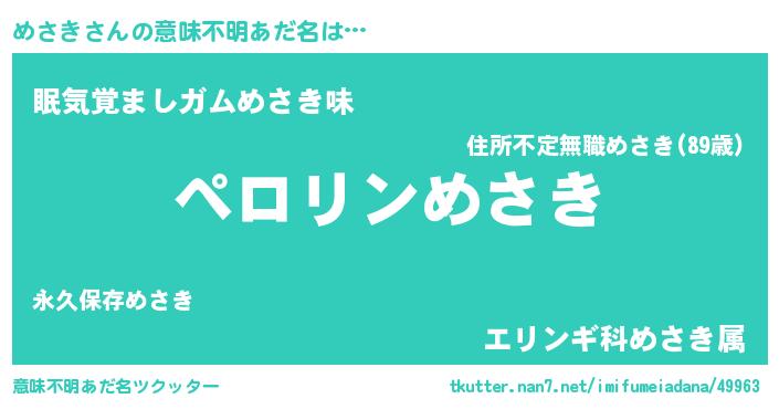 | ヒーロー風カッコイイあだ名 | 『スーパーメサキ』『友情の使者めさき』 |