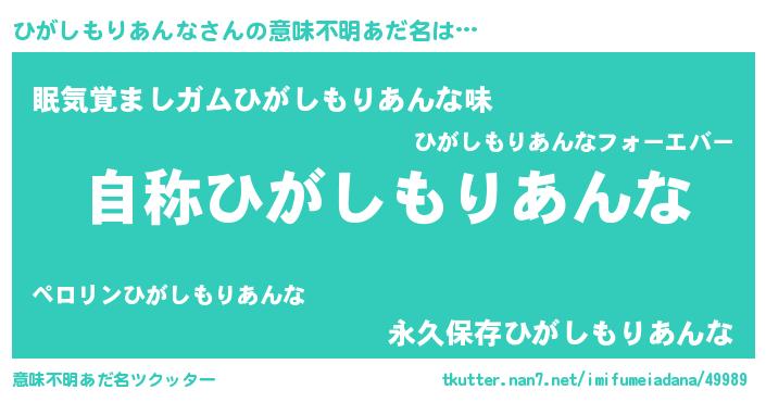 | ヘコむあだ名 | 『ひがしもりあんな(苦笑)』『レバニラ』 |