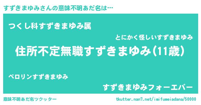 | 男性向けラノベタイトル風あだ名 | 『この素晴らしい世界にすずきまゆみを!』 |