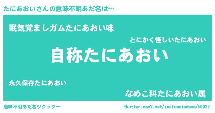 | 女子向けラノベタイトル風あだ名 | 『たにあおいストレイドッグス』 |