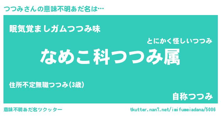 | 男性向けラノベタイトル風あだ名 | 『転生したらつつみだった件』 |
