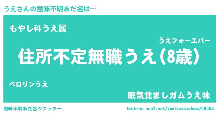| 男性向けラノベタイトル風あだ名 | 『この素晴らしい世界にうえを!』 |