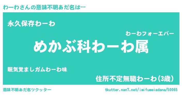 | 男性向けラノベタイトル風あだ名 | 『ワーワスレイヤー』『魔弾の王とわーわ』 |