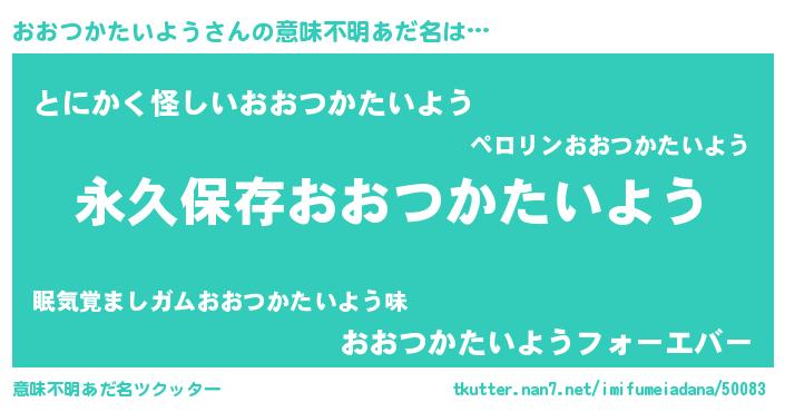 | 男性向けラノベタイトル風あだ名 | 『おおつかたいようという概念が存在しない退屈な世界 』 |