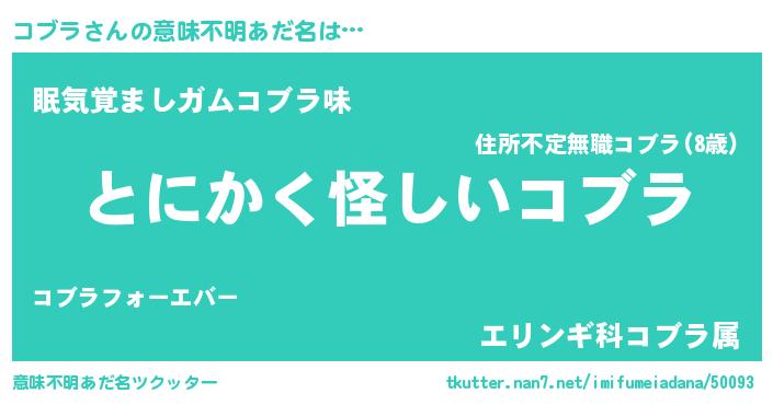 | 男性向けラノベタイトル風あだ名 | 『ダンジョンにコブラを求めるのは間違っているだろうか』 |