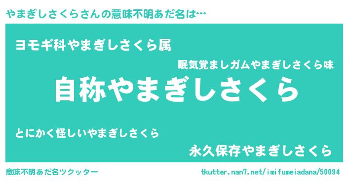 | 女子向けラノベタイトル風あだ名 | 『やまぎしさくらなんてお断りですっ。』 |