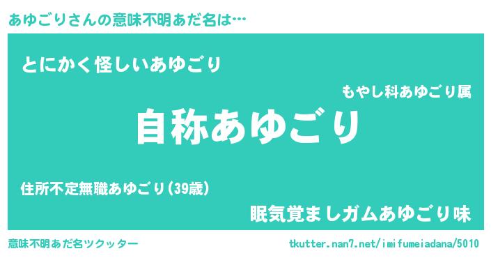 | ヒーロー風カッコイイあだ名 | 『サイバー戦士アユゴリ』『銀牙騎士アユ』 |