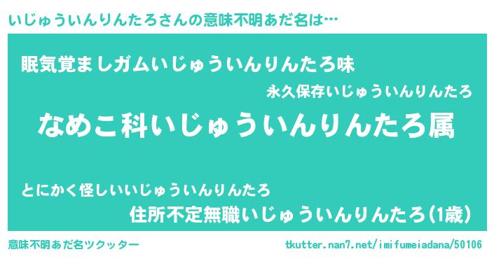 | ヘコむあだ名 | 『いじゅういんりんたろ(爆)』『いじを』 |