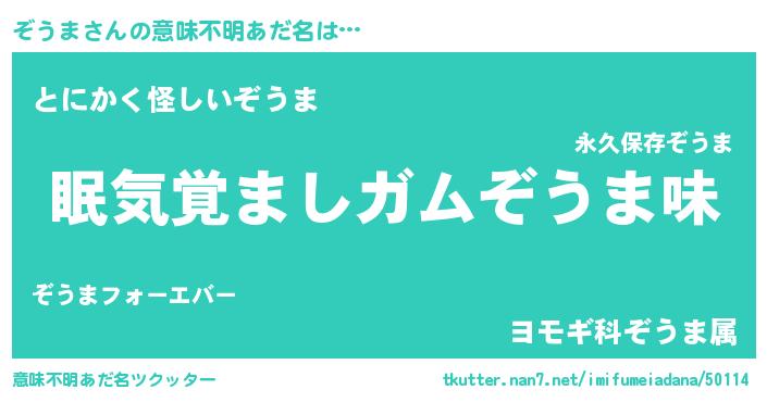 | 男性向けラノベタイトル風あだ名 | 『ノーゲーム・ノーゾウマ』 |