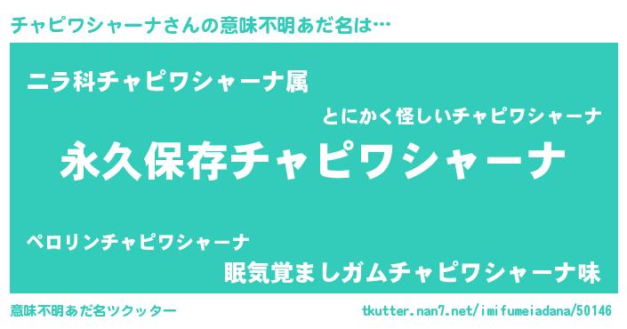 | ヘコむあだ名 | 『チャピワシャーナ(爆)』『チャぷりん』 |