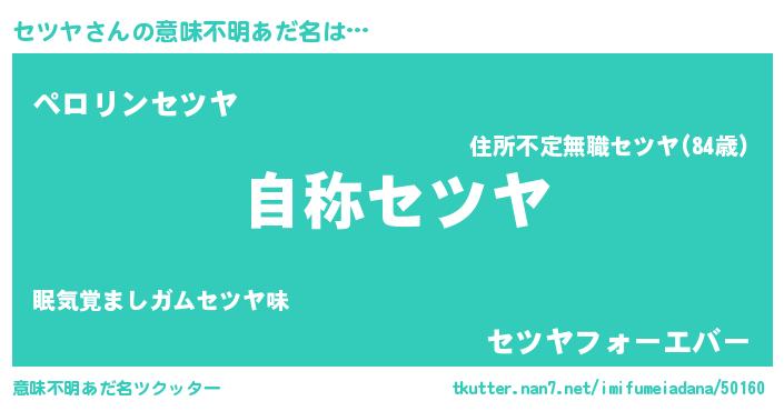| 男性向けラノベタイトル風あだ名 | 『緋弾のセツヤ』『魔弾の王とセツヤ』 |