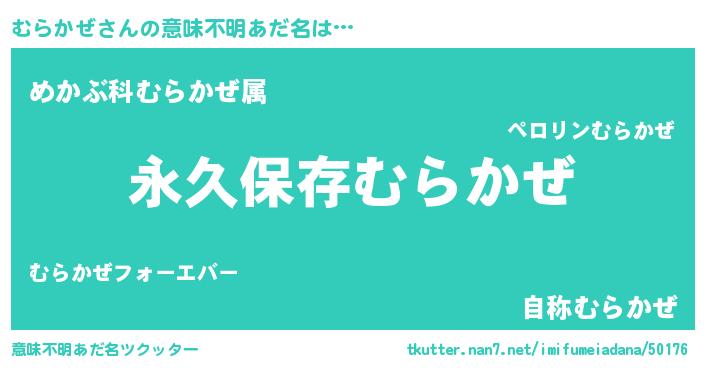 | 胡散臭い通販商品みたいなあだ名 | 『来世でも幸せになれる健康食品…その名も「むらかぜ」』 |