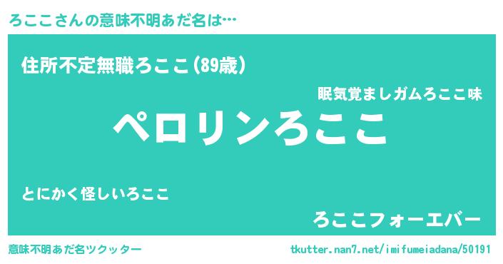 | ヘコむあだ名 | 『ろこにー』『酢こんぶ』『ろこ太郎』 |