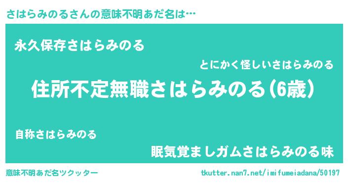 | 男性向けラノベタイトル風あだ名 | 『魔弾の王とさはらみのる』 |