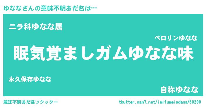 | 女子向けラノベタイトル風あだ名 | 『ゆなな恋絵巻』『ゆななの玉の輿計画!』 |