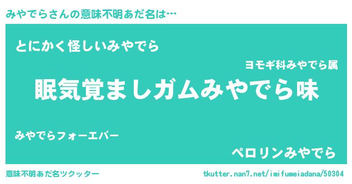 | ヒーロー風カッコイイあだ名 | 『愛の使者みやでら』『天弓騎士ミヤ』 |