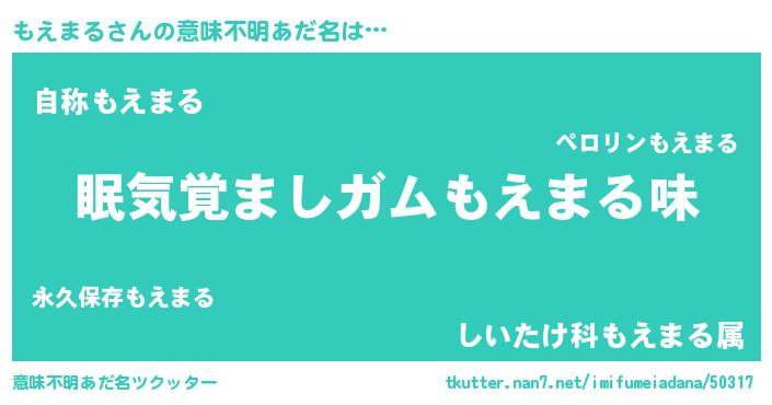 | 欧米人風あだ名 | 『ダニエルもえまる』『マイケルもえまる』 |