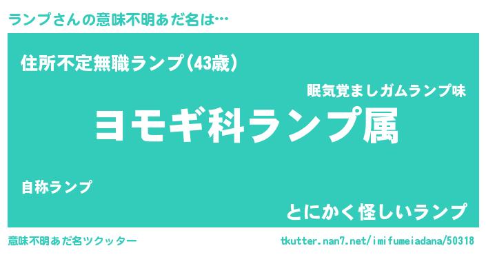 | 女子向けラノベタイトル風あだ名 | 『ランプの玉の輿計画!』 |