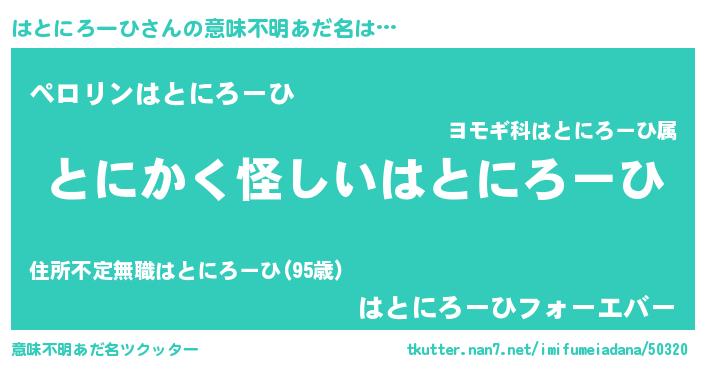 | 欧米人風あだ名 | 『ウサインはとにろーひ』 |
