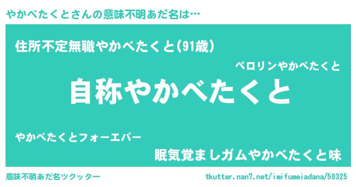| 男性向けラノベタイトル風あだ名 | 『はたらくやかべたくとさま!』 |