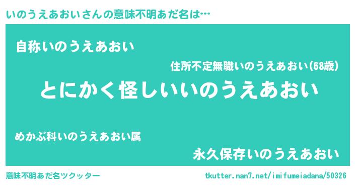 | ポケモン風あだ名 | 『ヒイノウエアオイ』『イノセウス』 |