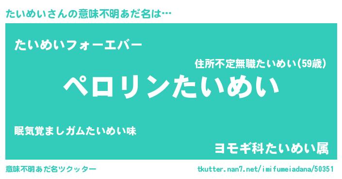 | 胡散臭い通販商品みたいなあだ名 | 『億万長者になれるブレスレット…その名も「たいめい」』 |