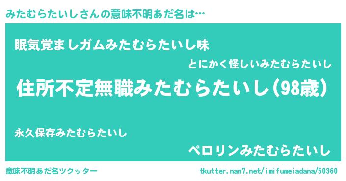 | 男性向けラノベタイトル風あだ名 | 『はたらくみたむらたいしさま!』 |