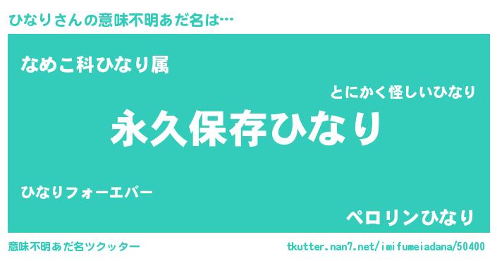 | 胡散臭い通販商品みたいなあだ名 | 『絶対に幸福をもたらす健康食品…その名も「ひなり」』 |
