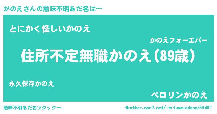 | 男性向けラノベタイトル風あだ名 | 『この素晴らしい世界にかのえを!』 |