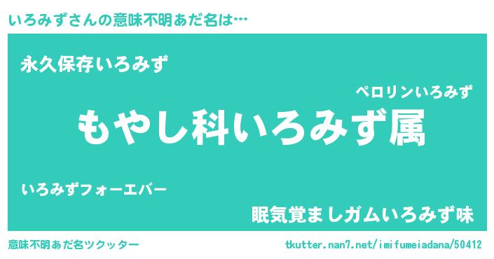 | ヘコむあだ名 | 『いろみず(遠い目)』『いろふぇ~』 |