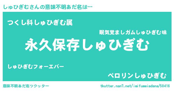 | 胡散臭い通販商品みたいなあだ名 | 『来世でも幸せになれる健康食品…その名も「しゅひぎむ」』 |