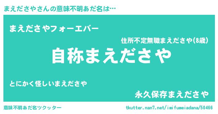 | 男性向けラノベタイトル風あだ名 | 『Re:まえださやから始める異世界生活』 |