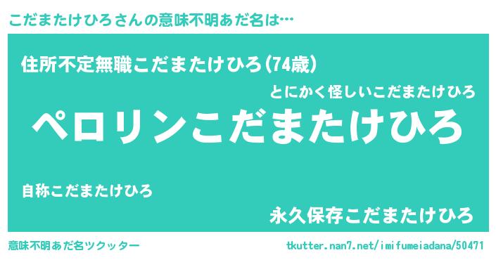 | 胡散臭い通販商品みたいなあだ名 | 『億万長者になれる霊験あらたかなお札…その名も「こだまたけひろ」』 |