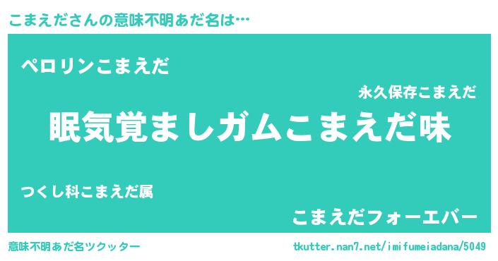 | 男性向けラノベタイトル風あだ名 | 『うちのこまえだが世界を掌握している!』 |