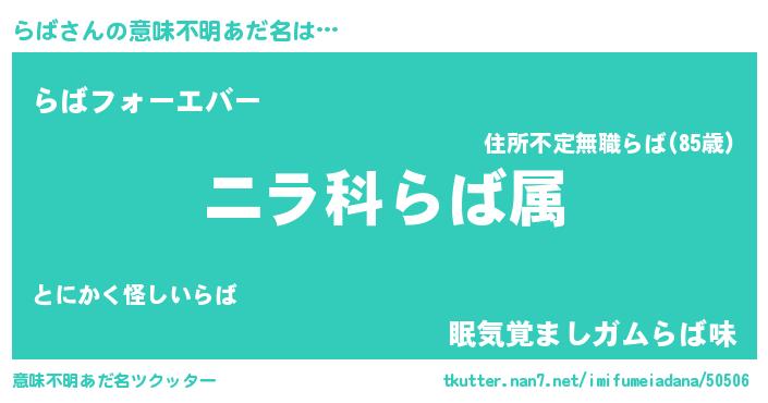 | ヘコむあだ名 | 『酢こんぶ』『らばお』『らば(爆)』 |
