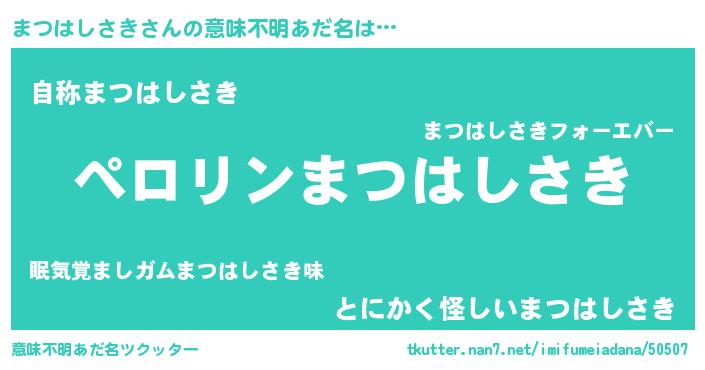 | 胡散臭い通販商品みたいなあだ名 | 『必ず成功するブレスレット…その名も「まつはしさき」』 |