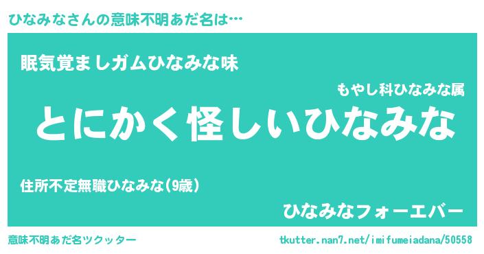 | ポケモン風あだ名 | 『ヒヒナミナ』『ヒックウザ』 |