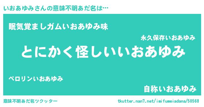 | 女子向けラノベタイトル風あだ名 | 『いおあゆみは平凡を望む』 |