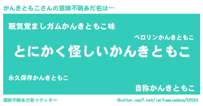 | ヒーロー風カッコイイあだ名 | 『炎刃騎士カン』『スーパーカンキトモコ』 |