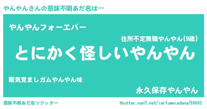 | ヒーロー風カッコイイあだ名 | 『暗黒騎士ヤン』『ウルトラやんやんマン』 |