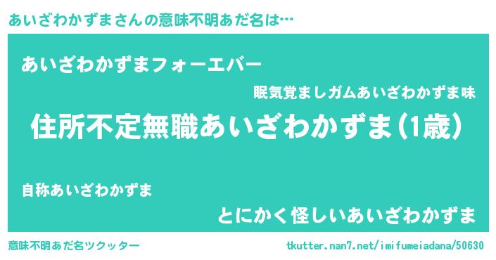 | 女子向けラノベタイトル風あだ名 | 『あいざわかずまが死なない童話 林檎のあいざわかずまの診療簿』 |