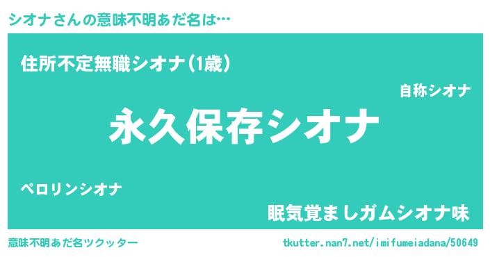 | 男性向けラノベタイトル風あだ名 | 『シオナという概念が存在しない退屈な世界 』 |