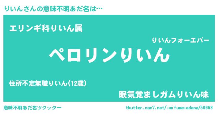| ヒーロー風カッコイイあだ名 | 『スーパーリイン』『正義の使者りいん』 |
